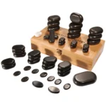 A massagem HOT-STONE é um método para tratar as contrações musculares e também para encontrar energias profundas. As pedras vulcânicas são ricas em princípios ativos e têm a capacidade de transmitir o calor de maneira gradual: por este motivo estimulam também a circulação e desencadeiam uma ação antioxidante. Contém um display digital.